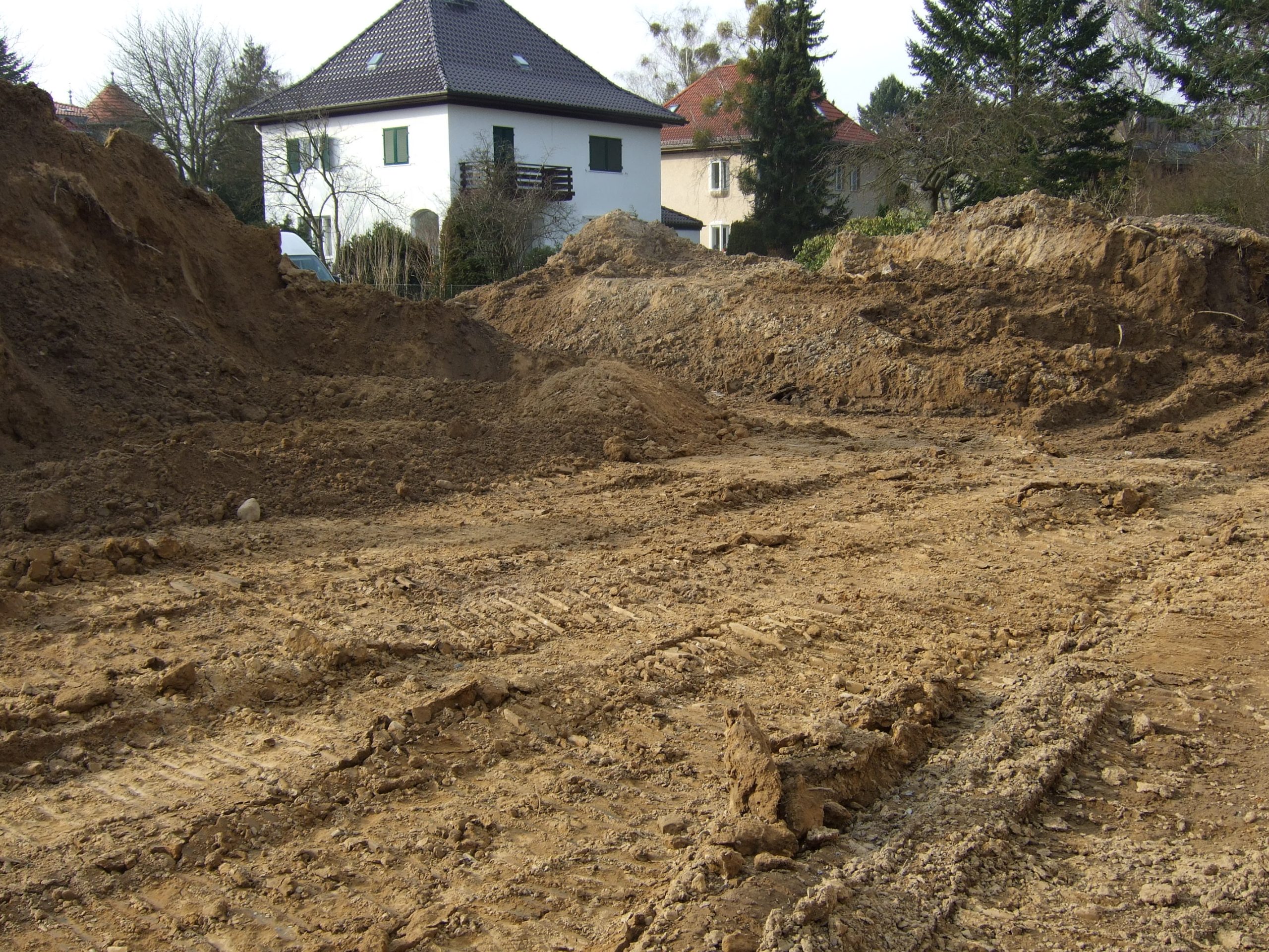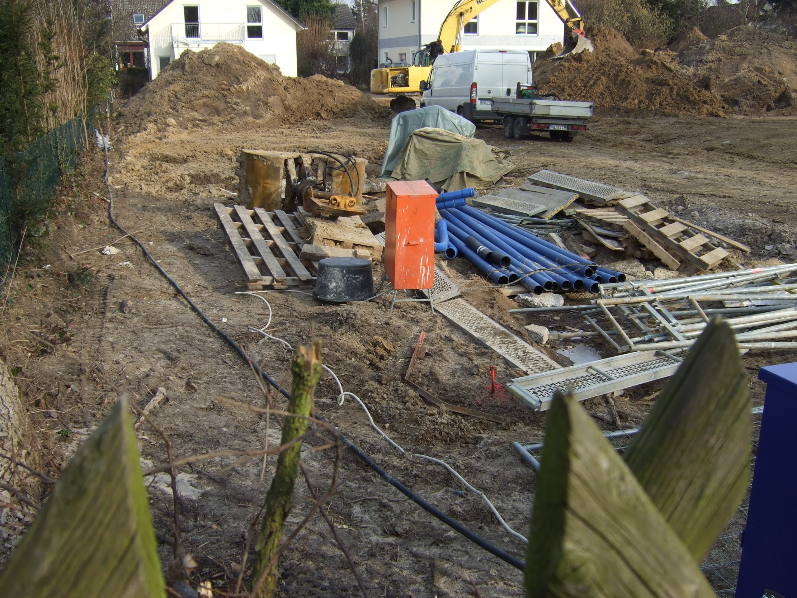 Heute haben die Arbeiter von D*** damit begonnen, die Aushubberge auf den Grundstücken zu verteilen und das Gelände einzuebnen. Das dauert wohl noch ein paar Tage bis alles fix und fertig ist. Aber dann warten schon die nächten Aktionen auf uns. Nur auf meinem Grundstücksteil stapelt sich noch der Rest der Baumaterialien und allerhand Krempel. Unnötig zu erwähnen, dass diese Aktionen wieder einer meiner Baugrubenmarkierungen das Leben gekostet haben 😉 4 – 3 – 2…