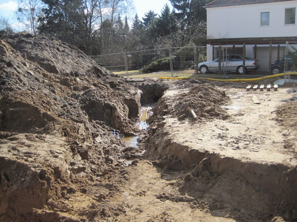 Das Wetter bessert sich und es hat auch einige Fortschritte auf der Baustelle gegeben. So wurden die Mediengräben teilweise schon wieder verfüllt und die notwendigen Installationen durchgeführt. Ob allerdings am Montag mit dem Aufbau der Gerüste begonnen werden kann bleibt fraglich.