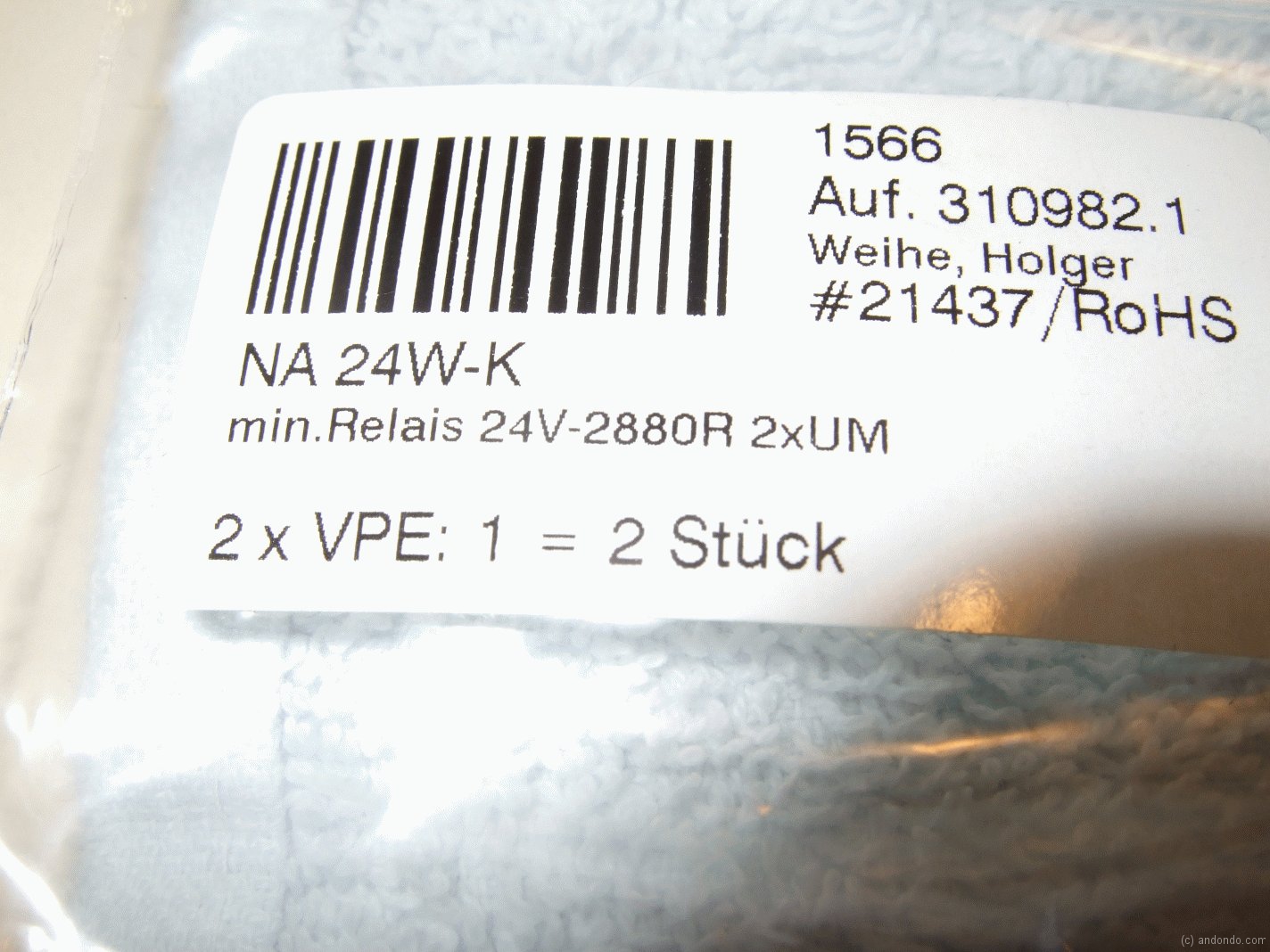Es gibt sicherlich noch andere Typen, ich habe mich für diese entschieden. Im Zweifel hilft ein Gang zum nächsten Geschäft für elektronische Bauteile. Bestellt habe ich bei Farnell, bzw. beim Endkundenshop hier in Berlin. Das ging superschnell (nachmittags bestellt – am nächsten Vormittag aus Holland geliefert)! Klasse! Top Service! Ich habe in diesem Zuge alle Relais getauscht – egal ob defekt oder nicht. Wer kann schon sagen, ob oder wann sonst das nächste Relais ausgefallen wäre.
