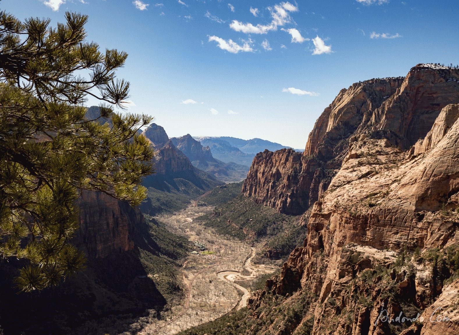 Nach einer Übernachtung in Hurricane schon gleich das erste visuelle Highlight mit einem super Sonnenaufgang mit „Alpenglühen“. Was ein Wetter – kalt aber sonnig – und das noch kurz vor Beginn der offiziellen Saison. Also nichts wie hin in den Zion Canyon. Heutiges Ziel: Der Aussichtspunkt „Angels Landing“ mit einem spektakulären Ausblick über den Zion Canyon und den Virgin River. Den Aussichtspunkt kann man nur auf einem sehr schmalen Weg erreichen, der noch mit einer Kette zum Festhalten ausgestattet ist. Rechts und links geht es steil abwärts. Nichts für Leute mit Höhenangst aber jeden anstrengenden Meter wert! Danach noch einen kurzen Abstecher zum „Weeping Rock“. Was eine Überraschung! Durch die tiefen Temperaturen waren die Bäume im unteren Bereich mit einer zentimeterdicken Eisschicht bedeckt und die unten ankommende Gischt des Wasserfalls war Schnee. Sowas sieht man sonst nicht.
