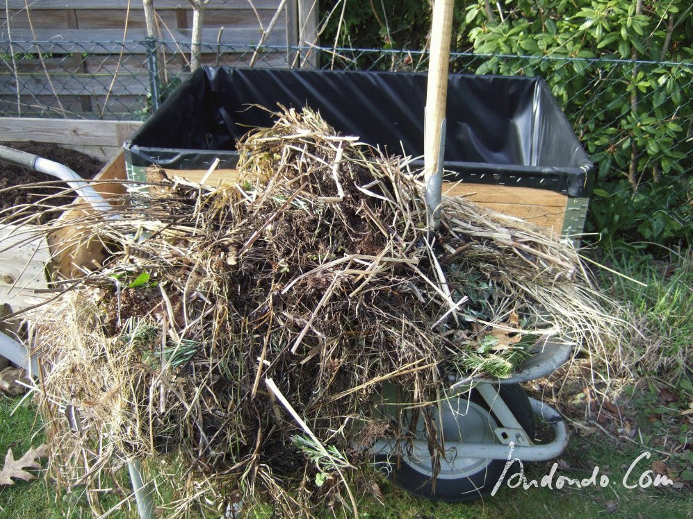 Und nach dem Aufstellen und Vorbereiten der Hochbeete müssen diese natürlich auch befüllt werden. Dazu verwende ich als unterste Schicht grobe Gartenabfälle und Schnittgut, gefolgt von klein gehäckselten Gräsern und Schilf gemischt mit halbzersetztem Kompost. Danach eine Schicht aus reifen Kompost und zum Schluss dann nochmal mit Gartenerde abdecken. Alles in Allem haben die beiden Hochbeete den gesamte Inhalt meiner drei Komposter und auch die abgeschnittenen Schilfhalme und die Rückschnitte der Gräser plus 10 Sack Gartenerde a 40 Liter verschlungen. Da war meine Schätzung doch gar nicht so schlecht.