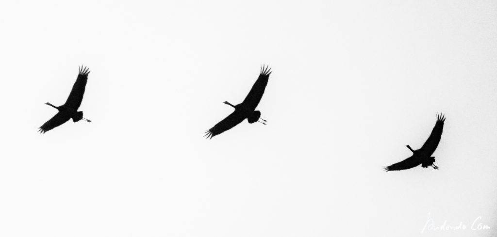 Und auch dieses Jahr bin ich wieder zur Kranichsaison nach Linum gefahren, um einige Aufnahmen von diesen wundervollen Vögeln zu machen. Leider war es auch wie im letzten Jahr am Morgen ziemlich neblig und man konnte die vielen abfliegenden Kraniche und Enten nur schemenhaft im Dunst erkennen. Aber das Wetter besserte sich und der Nebel verzog sich langsam. Leider waren aber dann zu diesem Zeitpunkt auch die Kraniche schon auf die umliegenden Felder ausgeflogen und der nun blaue Himmel war nun leer. Also auf in das Auto und die Umgebung abgefahren. Und wirklich. Auf einem Feld standen viele Kraniche bei der Futtersuche und eine einzelne Familie kam sehr dicht an die wartenden Fotografen heran und zeigte relativ wenig Scheu. Zum Glück konnte ich die Ausrüstung eines befreundeten Fotografen mitnutzen und einige Aufnahmen mit großer Brennweite machen, sodass ich die Vögel fast formatfüllend auf den Chip bannen konnte.