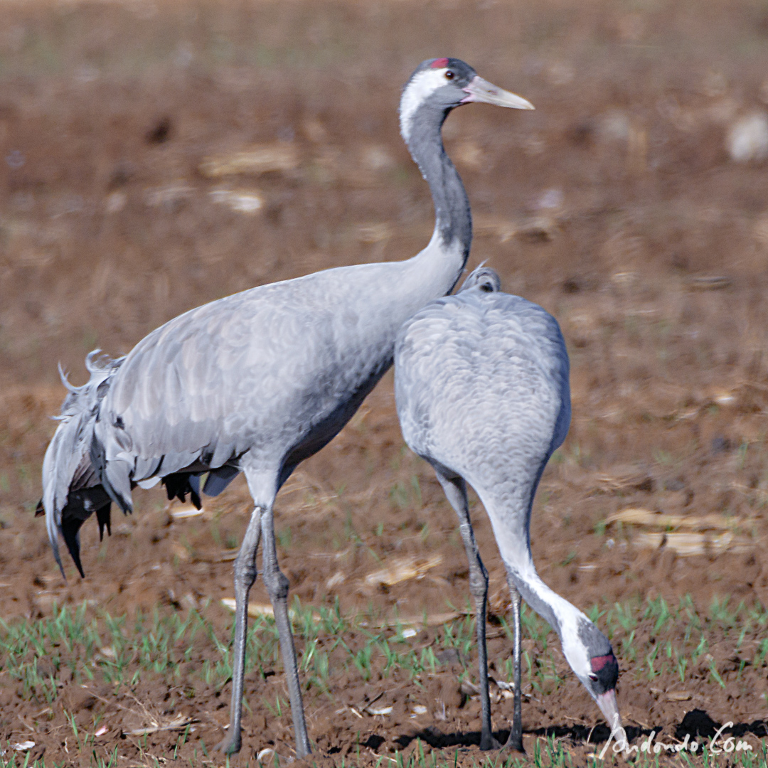 Und auch dieses Jahr bin ich wieder zur Kranichsaison nach Linum gefahren, um einige Aufnahmen von diesen wundervollen Vögeln zu machen. Leider war es auch wie im letzten Jahr am Morgen ziemlich neblig und man konnte die vielen abfliegenden Kraniche und Enten nur schemenhaft im Dunst erkennen. Aber das Wetter besserte sich und der Nebel verzog sich langsam. Leider waren aber dann zu diesem Zeitpunkt auch die Kraniche schon auf die umliegenden Felder ausgeflogen und der nun blaue Himmel war nun leer. Also auf in das Auto und die Umgebung abgefahren. Und wirklich. Auf einem Feld standen viele Kraniche bei der Futtersuche und eine einzelne Familie kam sehr dicht an die wartenden Fotografen heran und zeigte relativ wenig Scheu. Zum Glück konnte ich die Ausrüstung eines befreundeten Fotografen mitnutzen und einige Aufnahmen mit großer Brennweite machen, sodass ich die Vögel fast formatfüllend auf den Chip bannen konnte.