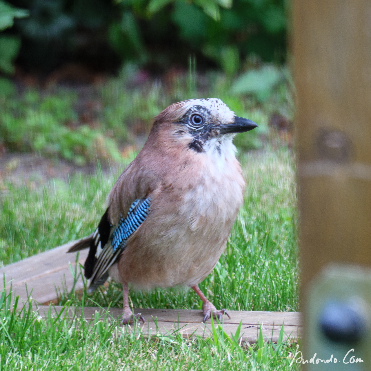 Heute morgen war wieder mal ein Eichelhäher im Garten. Eigentlich nichts Besonderes, dieser hier verhielt sich allerdings sehr sonderbar. Es sass relativ ruhig auf dem Rasen, und schien sich irgendwie unwohl zu fühlen. Die Flügel waren leicht ausgebreitet und der Vodel schüttelte sich oft und vollführte einge lustige Verrenkungen. Dann flog er plötzlich zur Vogeltränke und badete so heftig, dass fast das gesamte Wasser herausgeschleudert wurde. Danach schien es im besser zu gehen und nach kurzer Zeit flog er wieder ganz normal im Garten herum.