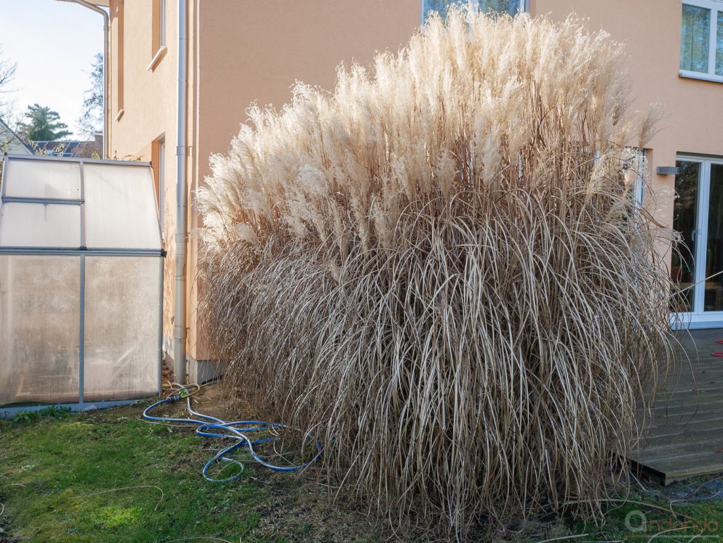 Und zusätzlich habe ich den schönen Tag auch noch für Gartenarbeit genutzt. Das Schilf an der Terasse sollte noch geschnitten und gehächselt werden. Also schnipp, schnapp, ab und weg!