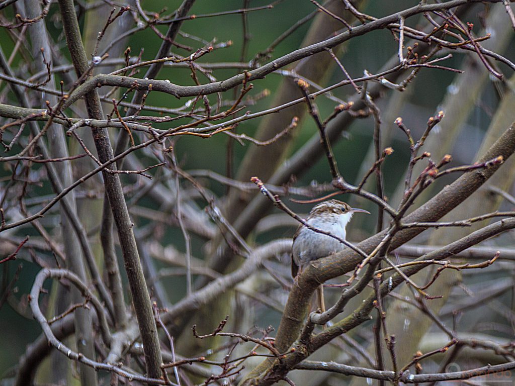 oder doch ein Waldbaumläufer? Die sind etwas schwer zu unterscheiden, und da es heute morgen sowieso noch sehr dunkel und grau mit trübem Licht war, bin ich doch glücklich, dass ich den Vogel durch Zufall ablichten konnte. Leider nur mit hoher ISO Zahl und verbesserungsfähiger Schärfe und leider nur in der Quitte hinter den Zweigen, was ein Fokussieren auch nicht einfacher machte. Egal was es nun wirklich ist, es ist das erste Mal, dass ich einen Garten- oder Waldbaumläufer in freier Natur gesehen habe. Und dann auch noch bei mir im Garten! Was will Mensch mehr?