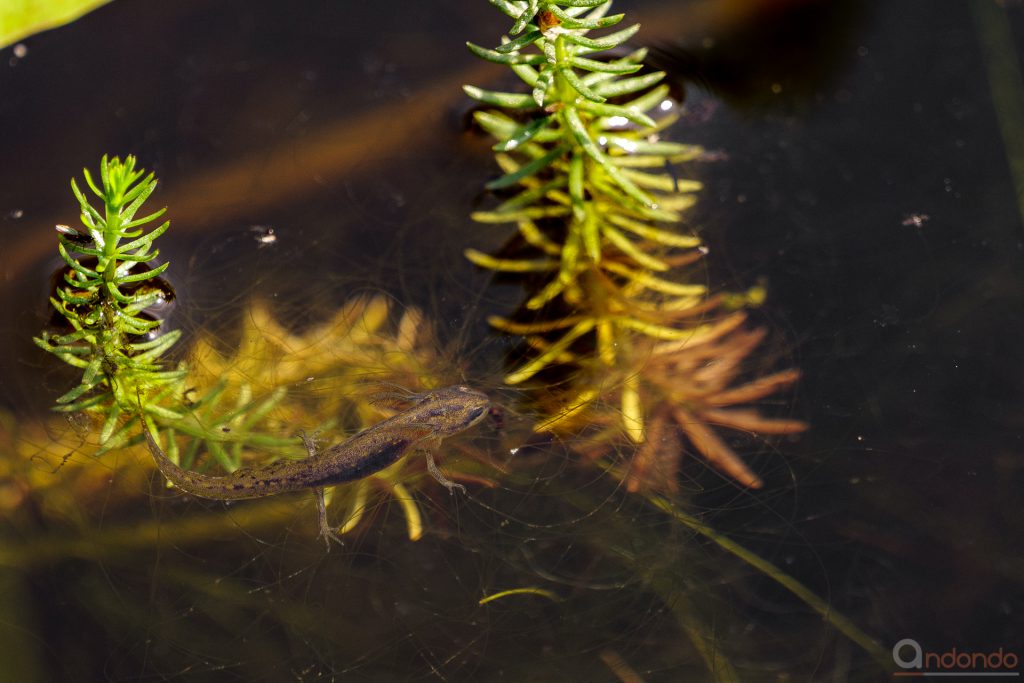 Unser Teich scheint bei den Tieren sehr beliebt zu sein. Heute schwamm dort ein kleiner Molch.
