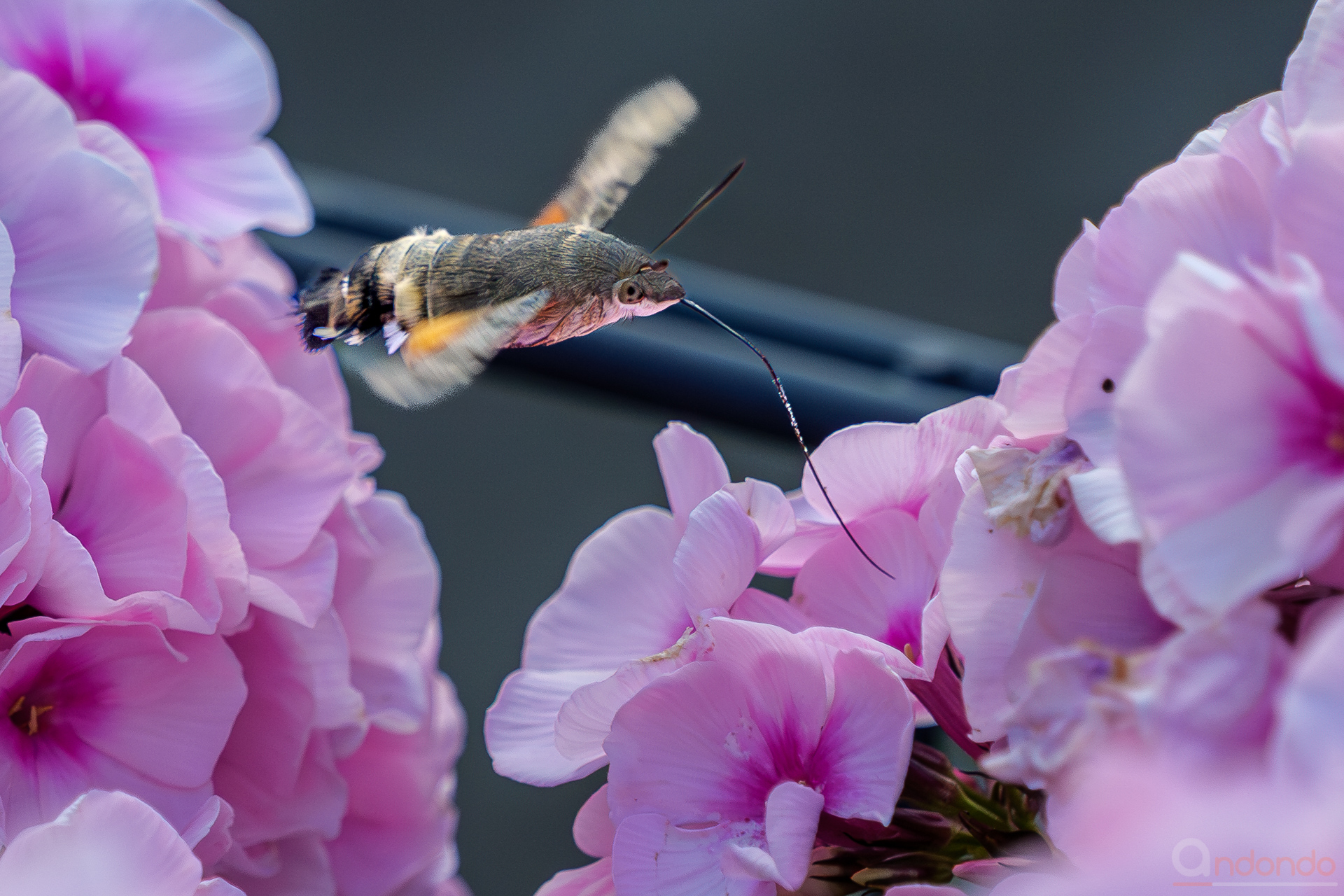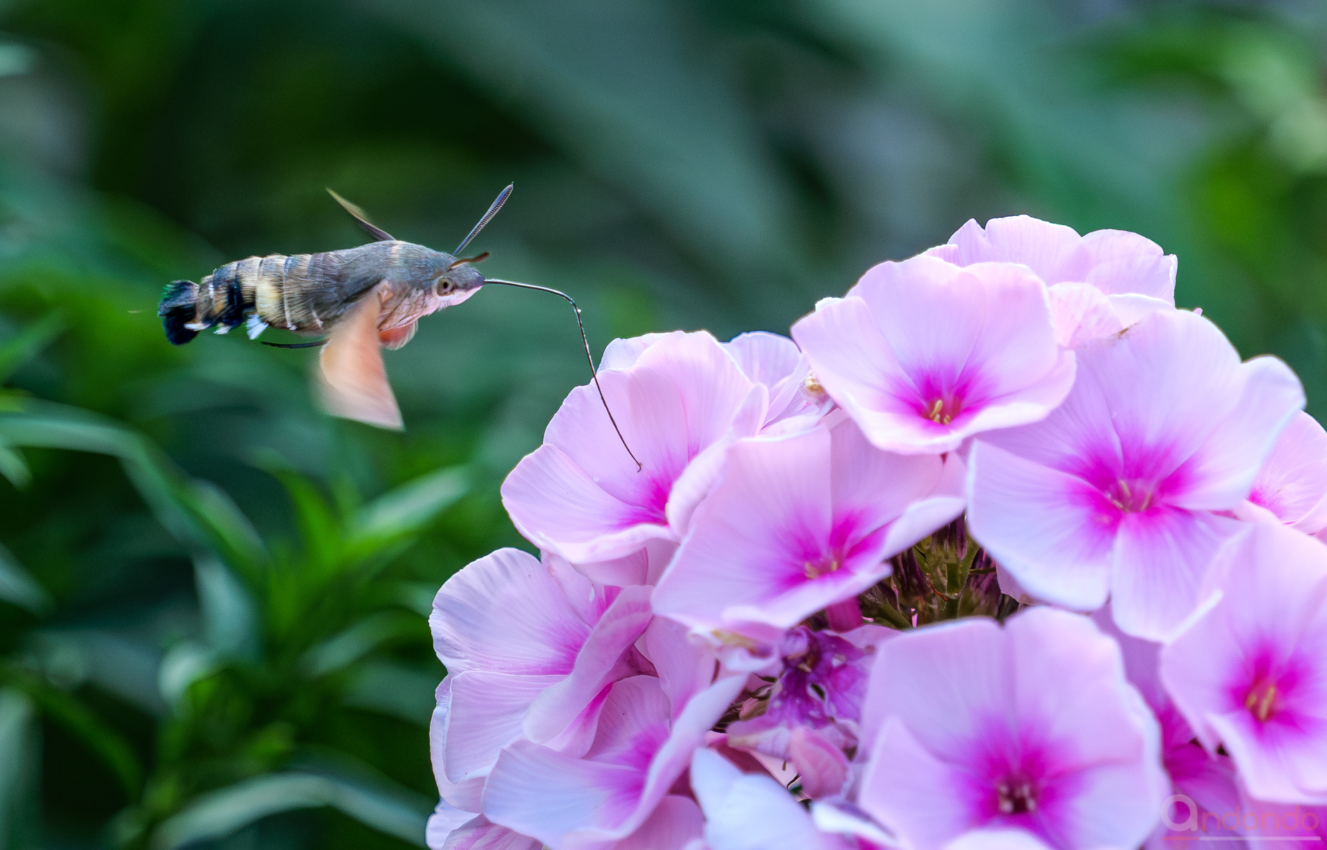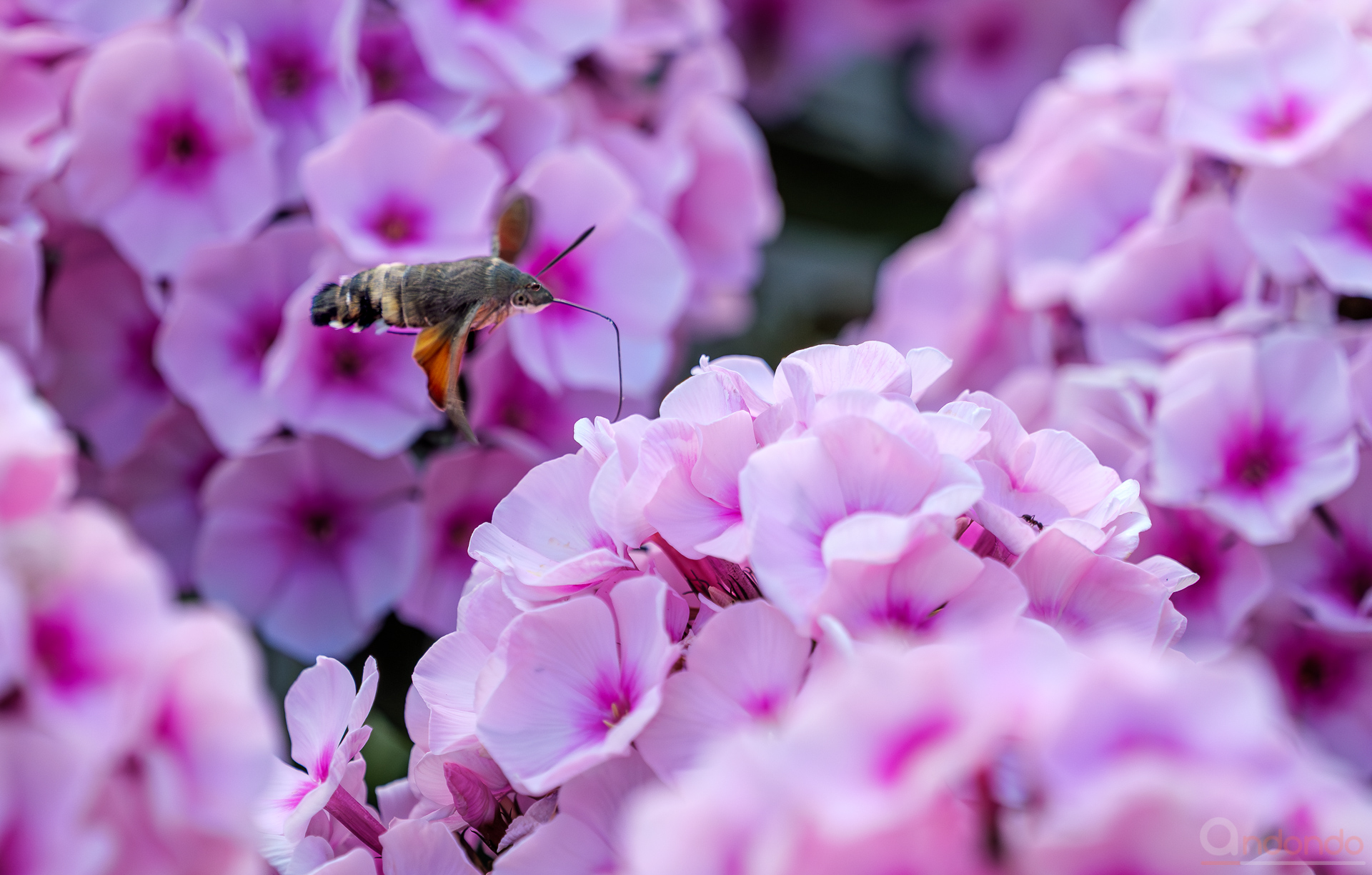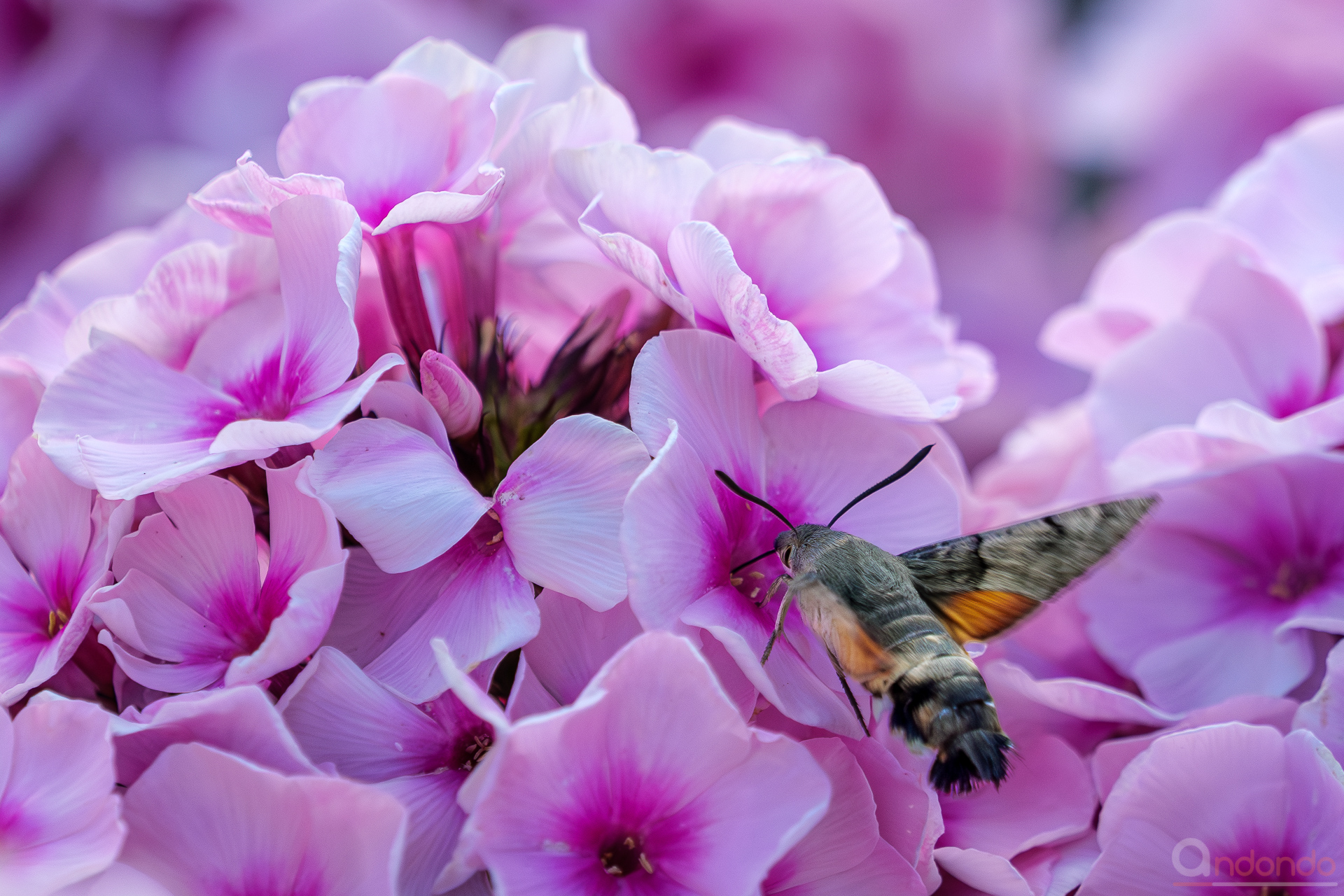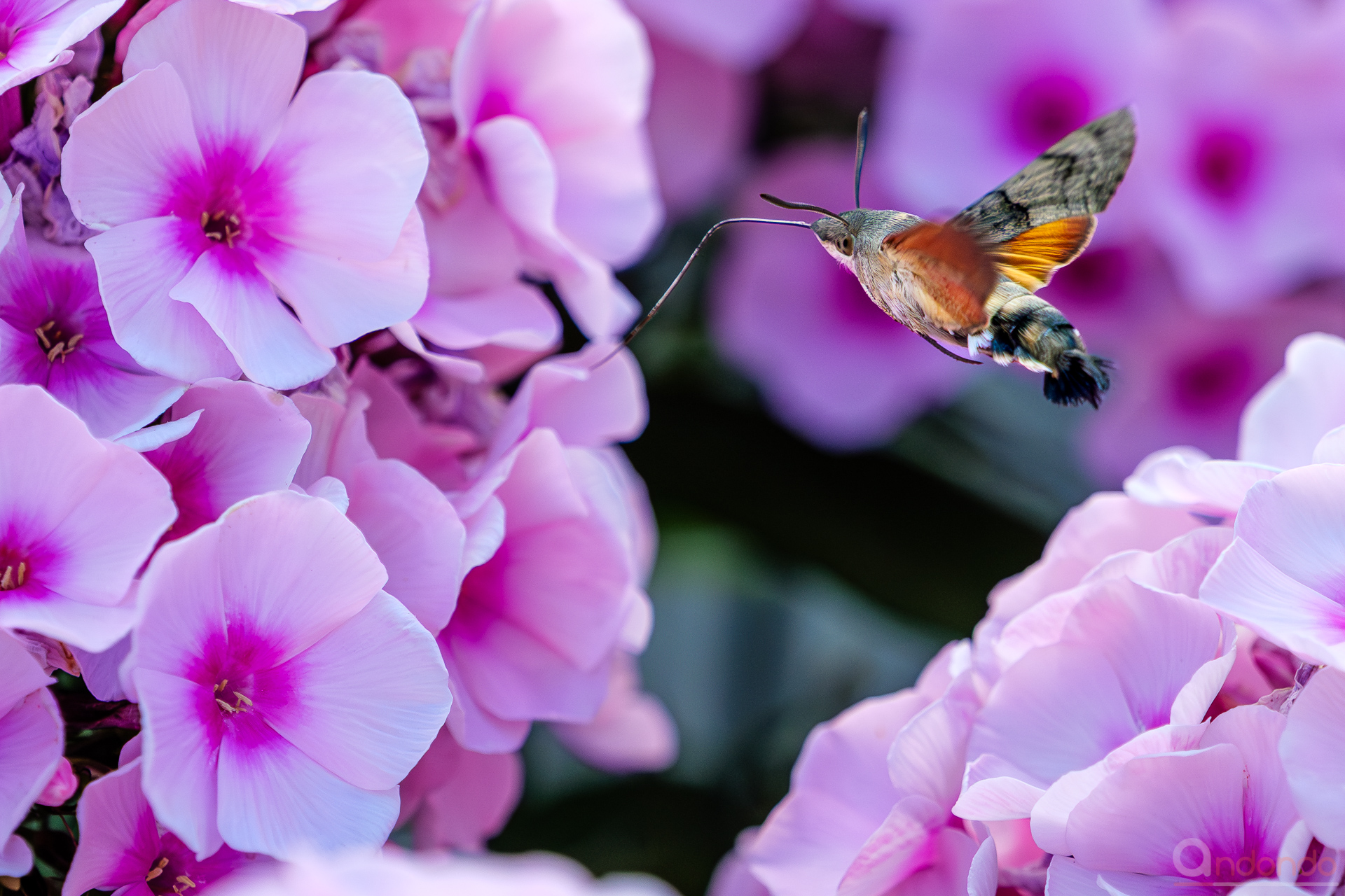 Mittlerweile immer häufiger auch bei uns im Garten und bei den Nachbarn anzutreffen: das Taubenschwänzchen (Macroglossum stellatarum) – Ein Kolibri, der ein Schmetterling ist. Hier an prachtvollem Flox bei unseren Nachbarn.