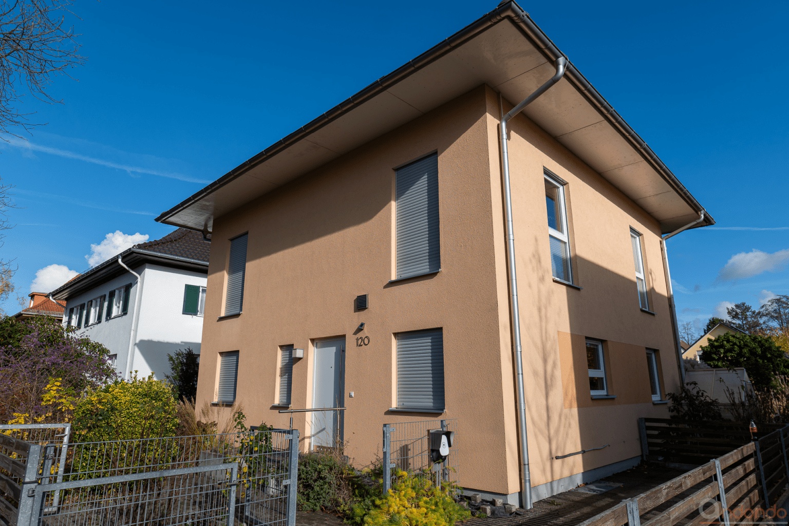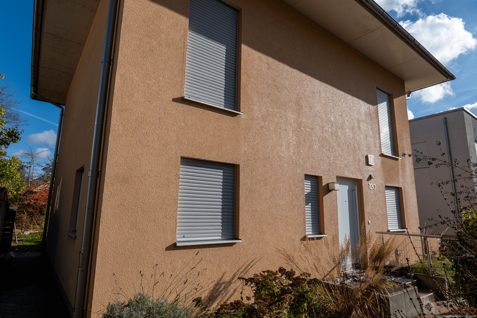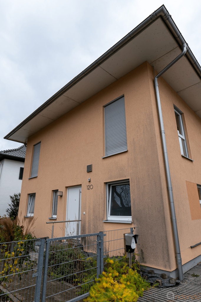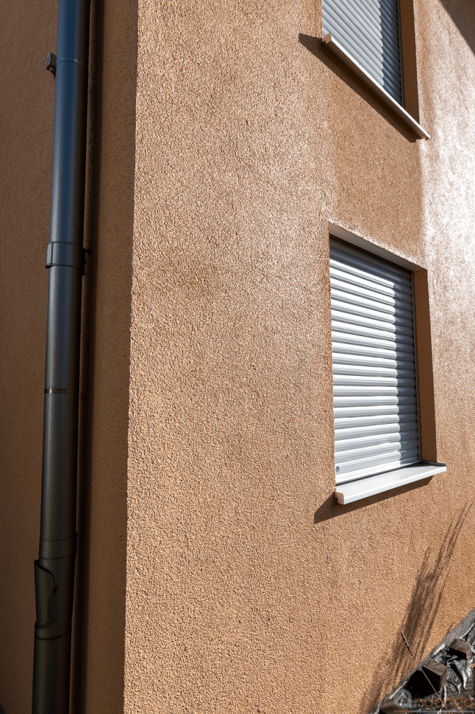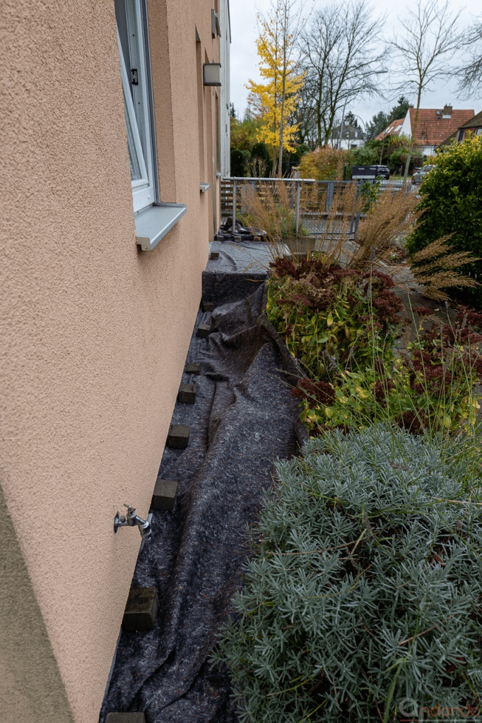 Leider hat unser kleines Schmuckstück im Laufe der Jahre durch die Be- und Entlüftungsanlage und den Verkehr der Straße optisch etwas gelitten, sodass wir uns schon mehrfach mit einer Fassadenreinigung beschäftig hatten. Die Vorderseite war über die Jahre doch schon sichtbar verschmutzt, die Seiten hingegen waren noch akzeptabel. Da machte sich dann doch der Dachüberstand und auch die sich hier nicht auswirkende Entlüftung bemerkbar. Aber wie so oft kam immer wieder etwas dazwischen, und die notwendigen Arbeiten verschoben sich immer wieder. Aber wie der Zufall es wollte, sprach mit unser Nachbar an, dass er eine Reinigung für sein Haus plane und schon einen Kontakt mit einem entsprechenden Betrieb aufgenommen habe und ob ich das nicht auch machen wolle. Da habe ich dann natürlich zugestimmt und nach einigen Tagen rückte auch schon die Reinigungsfirma an. Und was soll man sagen? Die Firma hat einen super Job gemacht und unser Haus erstrahlt wieder wie neu. Da wollte sich auch die Sonne an diesem trüben Tag nicht lumpen lassen, durchbrach flugs den Hochnebel, und ließ das fisch gereinigte Haus im Sonnenlicht funkeln und strahlen!