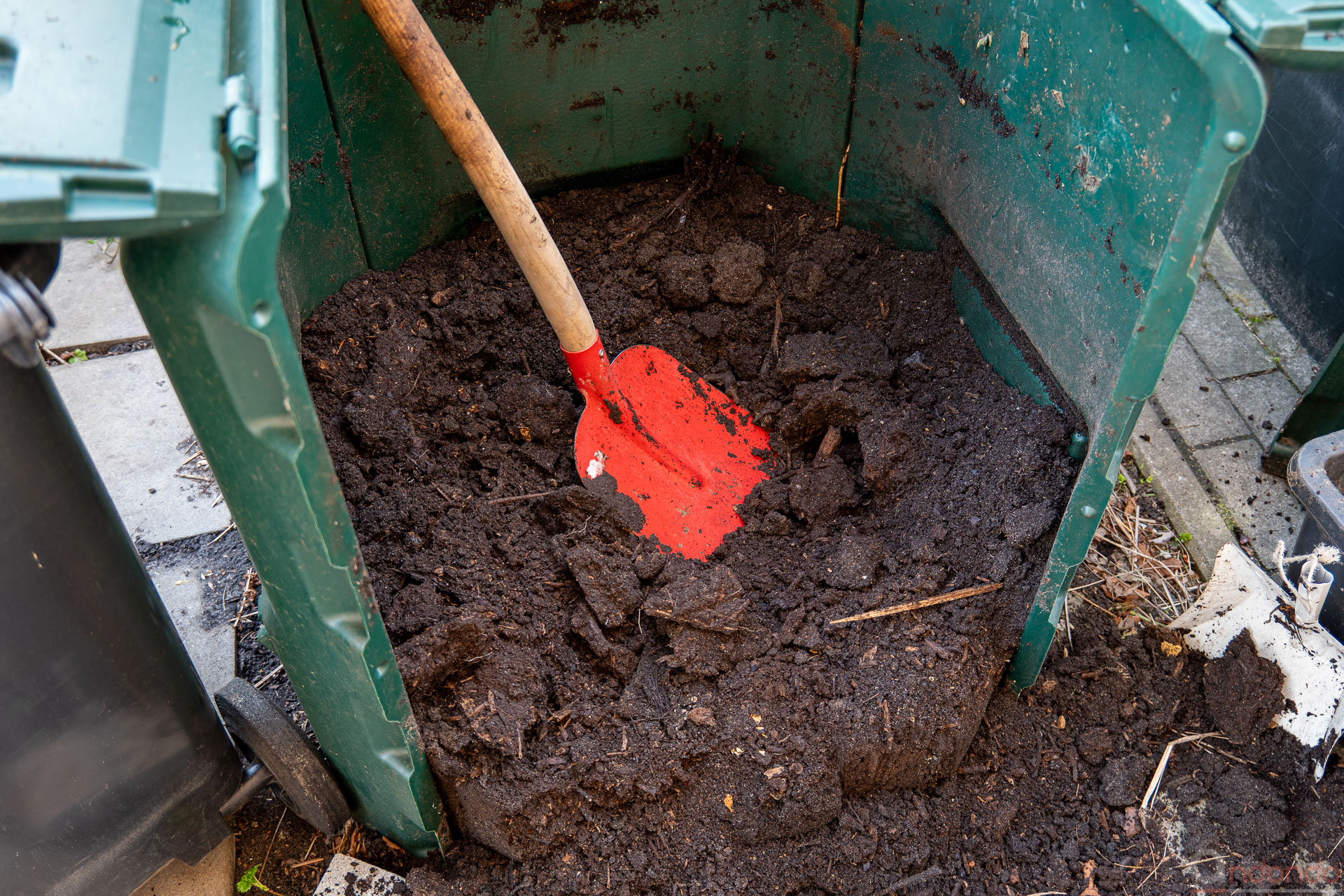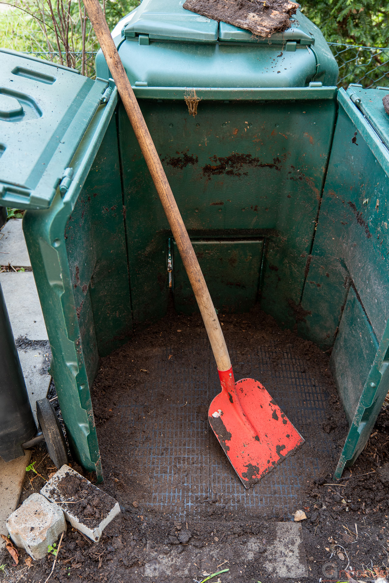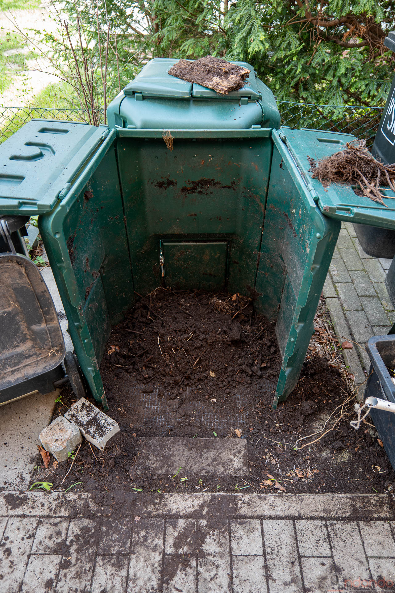 Ich habe mich heute endlich einmal mit einem der Komposter befasst. Für die Staudenbeete benötige ich neben den Hornspänen auch etwas biolgischen Dünger. Und was biete sich da mehr an als der Kompost, den ich nun schon mehrere Jahre in den beiden Kompostern heranreifen lasse. Und es wurde auch langsam Zeit, da die Komposter schon fast bis zum Rand gefüllt sind.